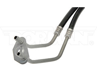 This automatic transmission oil cooler hose assembly is designed to match the fit and function of an original assembly. It is engineered from durable components as a reliable replacement for leaking or damaged lines on specified vehicles.