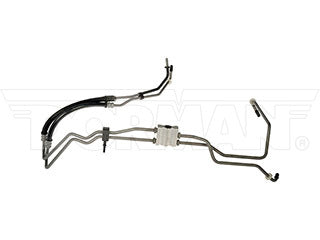 This direct replacement transmission oil cooler line matches original equipment technology, including a thermostatic bypass valve to optimize fluid operating temperature and regulate fluid flow. It is made of corrosion-resistant materials for reliable, leak-free service.